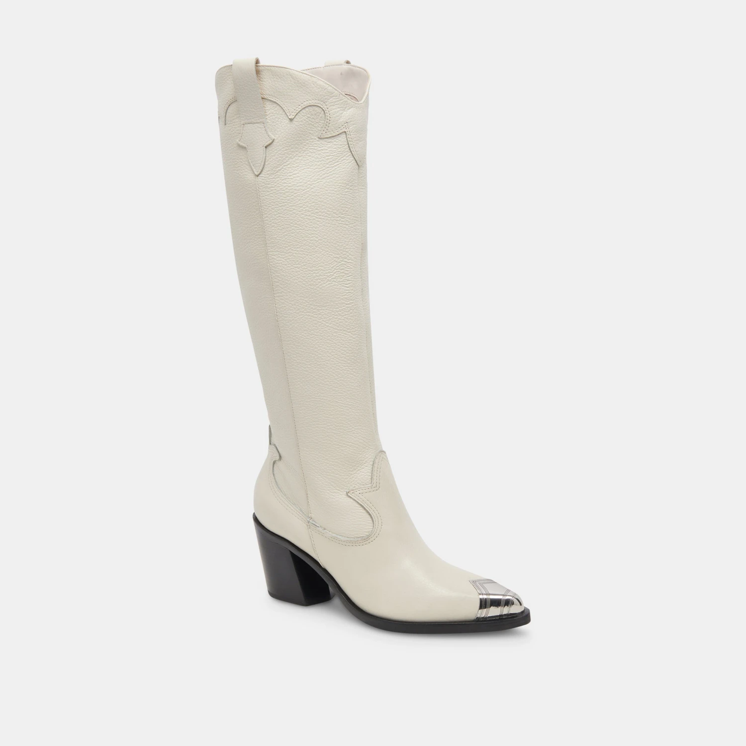 The luxe way to wear the western trend. KAMRYN shows off subtle stitching details and a contrasting toe accent, lending an authentic touch to this sophisticated knee-high cowboy boot.